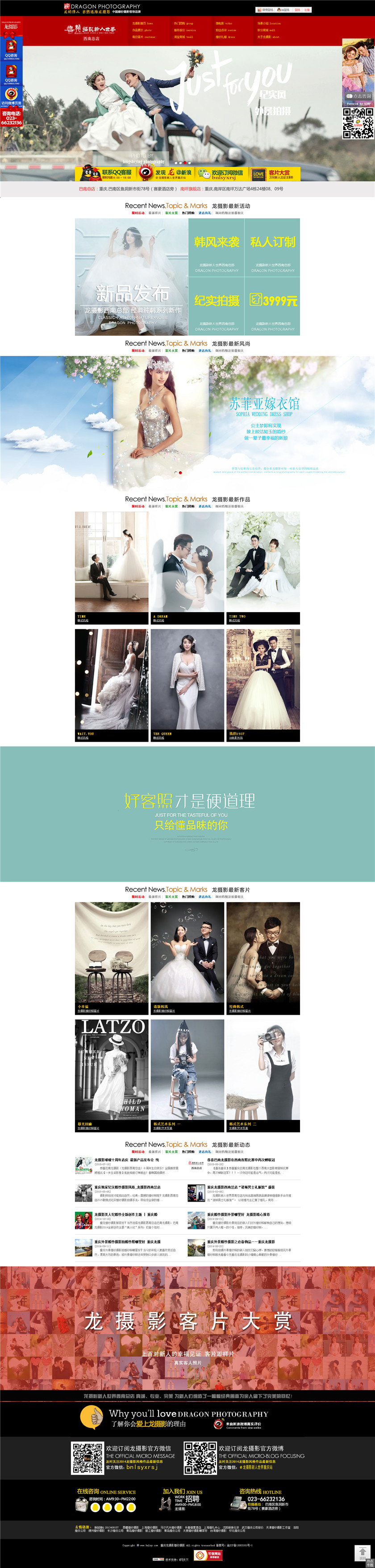 龙摄影新人世界西南总店成立于2005年!10年来,以真诚的态度,专业的技术,追求完美的理念!赢得了巴南新人们的喜爱!缔造了一幅幅经典的画面,为亲人们留下了美好回忆!