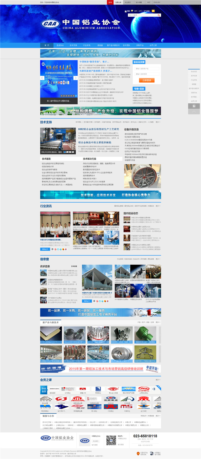 Project Description 中国铝业协会是由中国国内主要从事铝合金铸造、板、带、箔、管、棒、型材、锻件等企业组成的行业协会组织,协会由国内具有一定规模和影响力的企业发起,已有三百多家会员企业,目前还有很多企业踊跃希望加入,协会现有会员企业年销售额1000多亿元人民币,协会会员企业分布在国内华东、华南、西南、环渤海、东北、胶东半岛等中国经济活跃地区;产品涵盖航空航天、兵器装... Official website address 昌吉http://www.caa2014.com I want to share