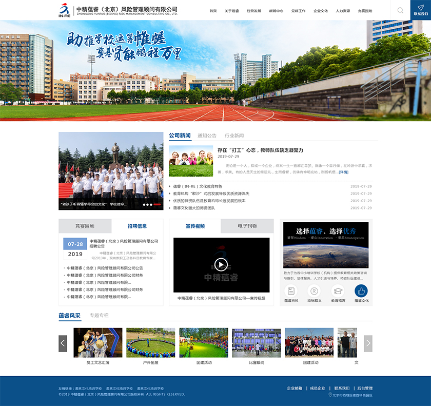 Project Description 中精蕴睿(北京)风险管理顾问有限公司2013年,现有教职工及各科目教育专家80多人,致力于为各中小培训学校(机构) 提供教育相关政策咨询与指引、法律服务、人才引进与培养、师资队伍建设与培训、教学教研与学科创新、市场营销企划、文化 理念塑造与品牌输出的专业化教育管理全方位的综合服务。 Official website address 昌吉http://in-re.com/ I want to share